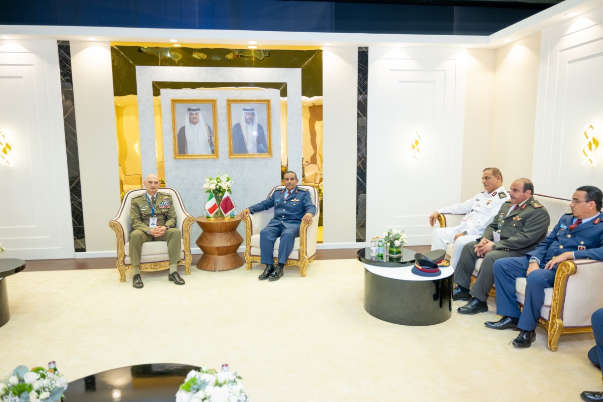 التقى سعادة الفريق الركن (طيار) سالم بن حمد بن عقيل النابت رئيس أركان القوات المسلحة، سعادة الفريق الركن (مهندس) عيسى سيف محمد المزروعي رئيس الأركان الإماراتي، وسعادة الفريق أول تان سري محمد بن عبدالرحمن قائد قوات الدفاع الماليزي، وسعادة الفريق الركن لوتشيانو بورتولانو الأمين العام ومدير التسليح الوطني الإيطالي، وسعادة الفريق مهندس غاييل دياز دي تويستا مدير التطوير الدولي في الإدارة العامة للتسليح في وزارة القوات المسلحة الفرنسية، والوفود المرافقة لهم، وذلك خلال مشاركتهم في أعمال معرض ومؤتمر الدوحة الدولي للدفاع البحري ديمدكس 2024 في نسخته الثامنة.
